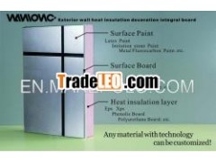 Heat insulation decoration integral board is a kind of newexterior wall thermal insulation material, because it has the gooddecoration effect, simple construction, can be used as a firebarrier material mainly phenolic foam board, rock wool, glass woolfoamed cement, etc..Thermal insulation decorative board is alsocalled energy-saving decorative board, is in the factoryprefabricated plate material, made of insulation materials anddecorative veneer composite material formed, used to hang in theouter wall of the building, while both the functions of heatinsulation and decoration.Also known as thermal insulationdecorative integration finished board, building envelope thermalinsulation energy-saving decorative board.
